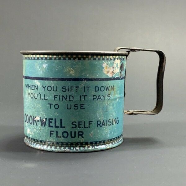 Title (ebay affiliate link): c.1920''s ANTIQUE BERRY''S COOK-WELL SELF RAISING FLOUR ADVERTISING TIN SIFTER CUP