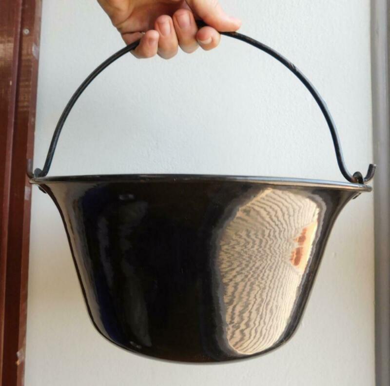 Nice Vintage Black & Mottled Enamel Pot Saucepan with Handle 1900s