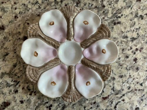 Antique Victorian German Porcelain Oyster Plate Luster Glaze