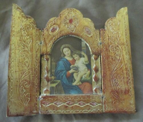 Title (ebay affiliate link): Vintage FLORENTINE GILT Italian Wood Toleware TRIPTYCH 3 Panel Icon Picture