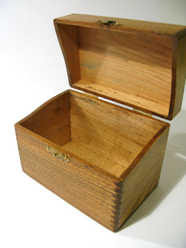 Antique Fingerjoined Solid Oak Desk-Top Index Card Filing Box.