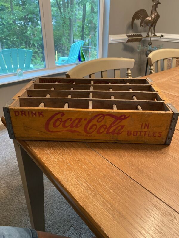 Title (ebay affiliate link): Vintage Coca Cola Yellow Wooden Divided Crate Johnstown, PA