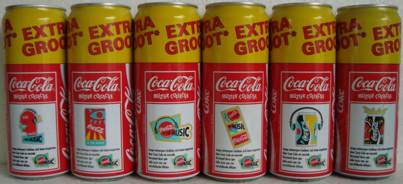 Title (ebay affiliate link): RARE Coca Cola "MUSIC" complete 500ml Can set from the NETHERLANDS 1993