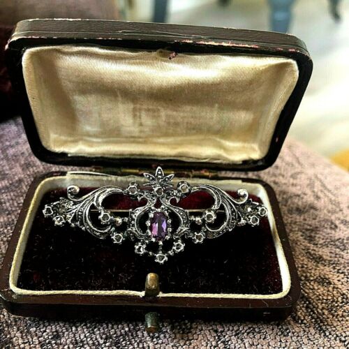 Title (ebay affiliate link): Vintage Antique Silver Amethyst & Clear Paste Brooch French Clasp Pin Hallmarked