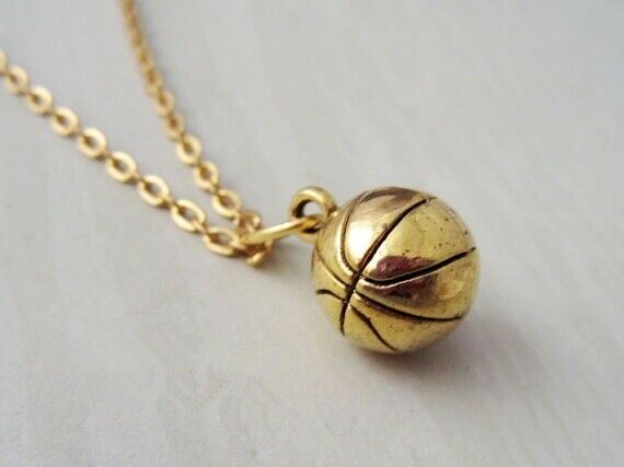 Title (ebay affiliate link): Gold Basketball Necklace, 3D Basketball Pendant - Antique Gold Toned Jewelry