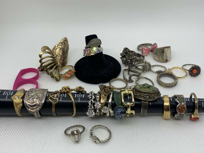 HUGE 37 RING LOT!! Antique, Vintage, Modern, Rhinestone, Spoon, Gold HGE, Resale