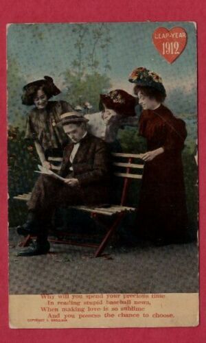 Title (ebay affiliate link): 1912 Leap Year Man reading baseball news women seeking his affection romance