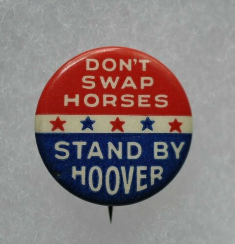 Title (ebay affiliate link): 1932 Presidential campaign Don''t Swap Horses, Stand by Hoover pinback