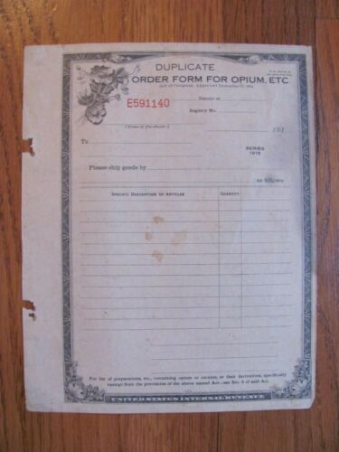 Title (ebay affiliate link): 1915 MEDICAL OPIUM ORDER FORM - U. S. INTERNAL REVENUE - COCAINE - LooK
