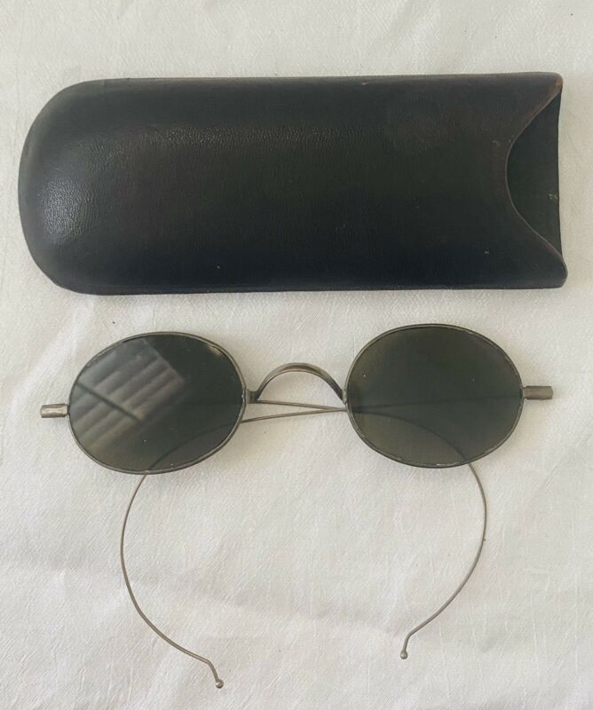 Title (ebay affiliate link): Antique Silver Tone CIVIL WAR FRANKLIN Looking Green Lens Sunglasses with Case