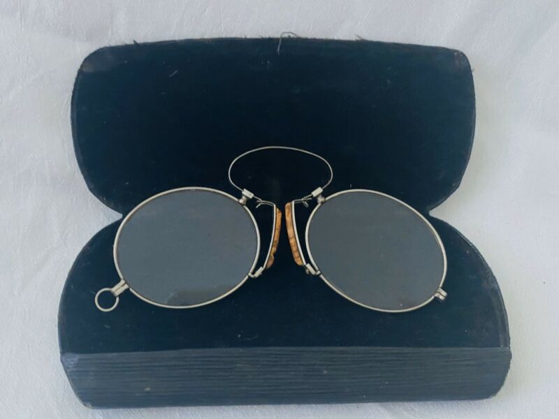 Title (ebay affiliate link): ANTIQUE Silver Tone / White Metal Spring Bridge Pince Nez SPECTACLES with Case