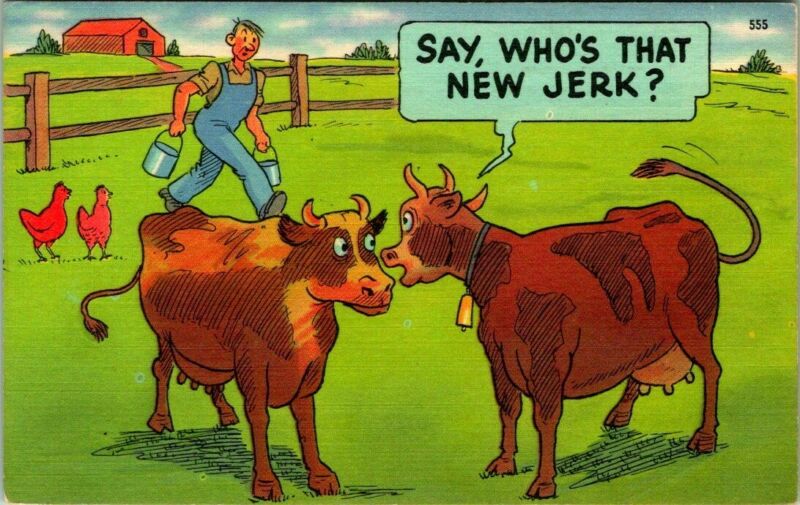 Title (ebay affiliate link): C37-6368, WHO''S THAT NEW JERK? LINEN COMIC POSTCARD.