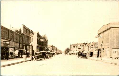 RPPC ~ MAIN ST ~ ICE CREAM ~ BARBER SHOP ~ TIRE SHOP ~ STORE FRONT ~ ALMA MI 313