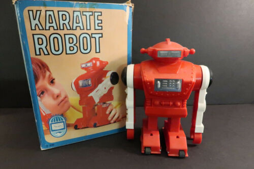 Title (ebay affiliate link): Sears Tomy Red Karate Robot 8"1/2 Battery Operated Mint + Box Japan 1969