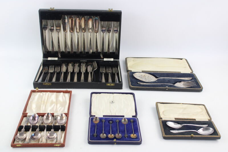 Title (ebay affiliate link): 5 Sets Of Boxed SILVER PLATE Cutlery Inc. Roberts & Belk, Kings Pattern, Spoons