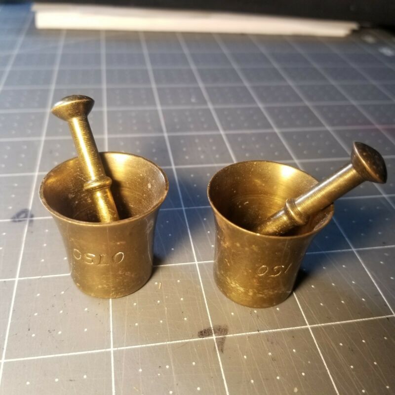 Title (ebay affiliate link): Two (2) Small Vintage OSLO Brass MORTAR & PESTLE Apothecary Pharmacy 1.25"
