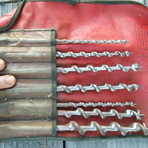 Title (ebay affiliate link): Vtg Set of 5 IRWIN USA Wood Auger Bits & Pouch MASLAND DURAN