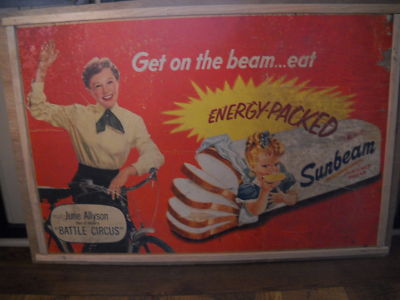 1955 SUNBEAM BREAD GIRL CARDBOARD SIGN JUNE ALLYSON BIG