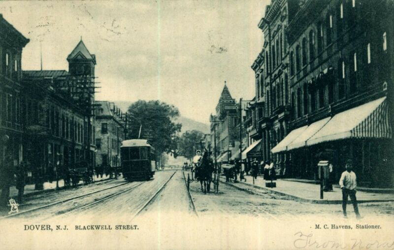 Dover NJ, New Jersey, Blackwell Street, Trolley, Horse/Buggy, 1907 Tuck Postcard