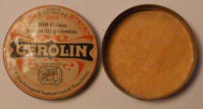 VINTAGE GERMAN CEROLIN PILL LITHO TIN BOX MANNHEIM