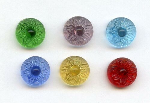 6 VINTAGE DEPRESSION GLASS buttons--ALL the SAME DESIGN--DIFFERENT COLORS--9/16"