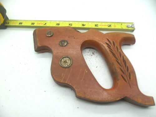 vintage Disston Hand saw handle wooden medallion rivets nuts wood wheat