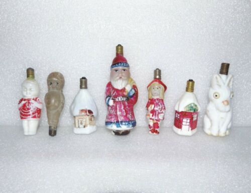 Title (ebay affiliate link): VINTAGE FIGURAL CHRISTMAS Santa Claus Double Sided Girl 7 TREE GLASS LIGHT BULBS