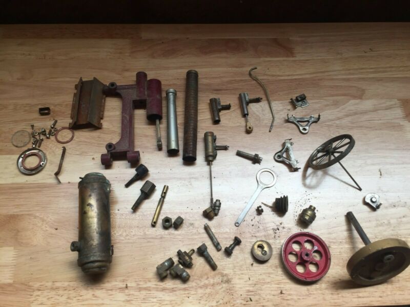 vintage toy steam engine brass parts + red brick Stack