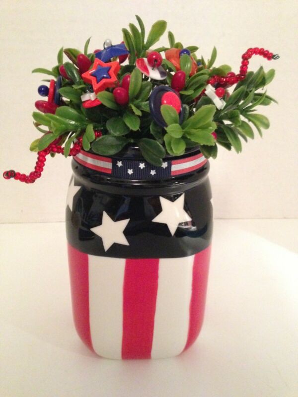 Title (ebay affiliate link): VTG Button Bouquet/Mason Jar-Americana-USA-Patriotic-July 4th-Prim-Country Decor