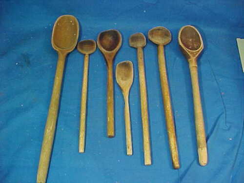 Title (ebay affiliate link): 7 Orig 19thc PRIMITIVE Hand Crafted WOOD Kitchen COOKING SPOONS