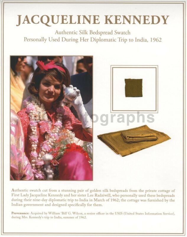 Title (ebay affiliate link): Jacqueline Kennedy Display w/ Silk Swatch From Diplomatic Trip to India, 1962