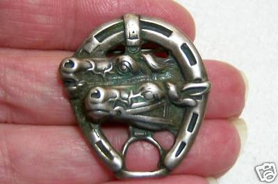 Title (ebay affiliate link): Antique Sterling Silver Horse's Heads Shoe Brooch Pin