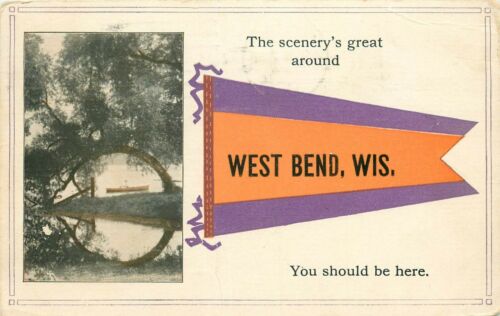 Title (ebay affiliate link): c1910 Postcard; Pennant, Great Scenery at West Bend WI, You should be here.