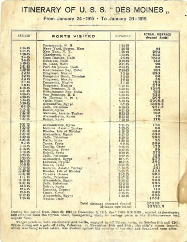 Vintage Naval Postcard, Itinerary of USS Des Moines