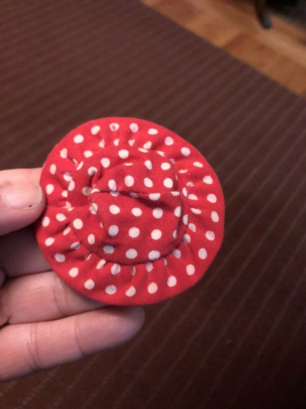 Title (ebay affiliate link): Vintage? Barbie Red Cotton Sun Hat Ruffled Brim White Polka Dots Wide Crown