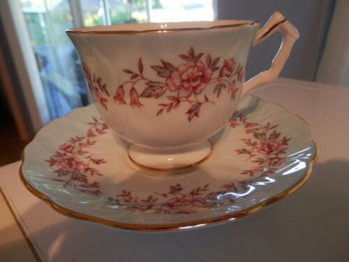 AYNSLEY Tea Cup and Saucer Fine Bone China Blue and Pink