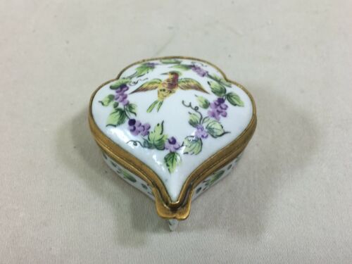 Antique Sevres French porcelain heart shaped hand painted pill box