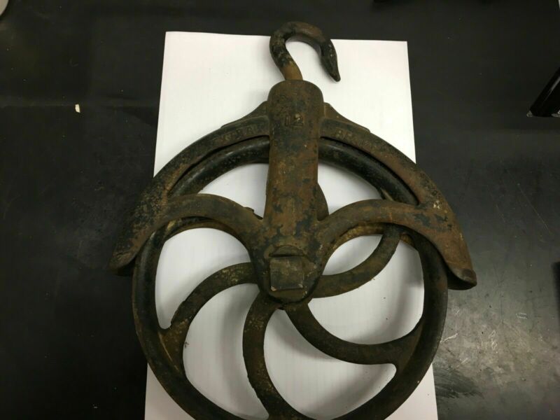 Title (ebay affiliate link): Vintage Large Heavy Duty Cast Iron Pulley Barn Well Wheel Steampunk Industrial