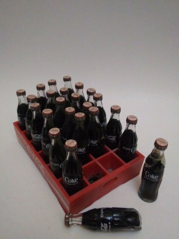 Vintage tiny 24 Coca Cola glass coke Miniature bottles *2 broke / red mini Crate