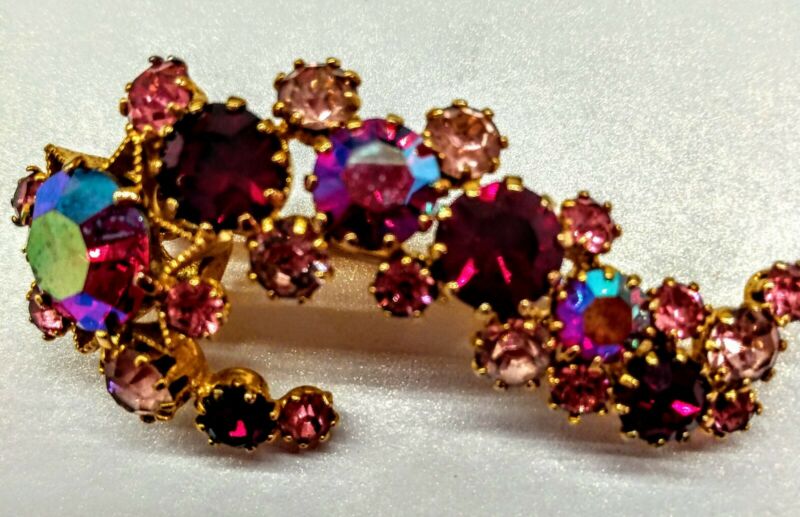 High Precision Cut Swarovski Vintage Crystal Signed Austria multicolored Brooch