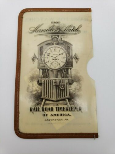Title (ebay affiliate link): Vtg Ad Celluloid Hamilton Watch Railroad Timekeeper Lancaster w/ Leather