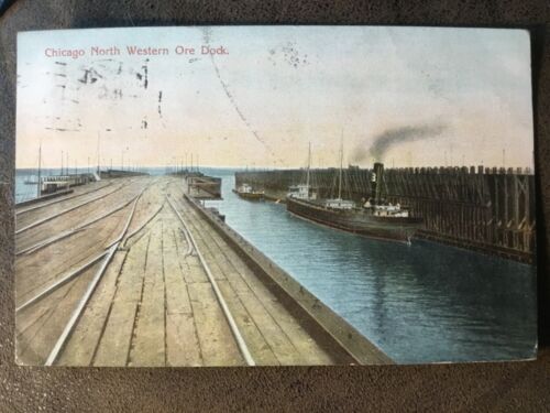 Ashland WI Chicago Northwestern Ore Dock Ship boat printed Postcard Wisconsin