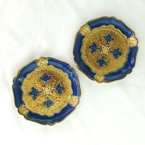 Pair of Italian Tole Florentine Coasters Blue and Gold