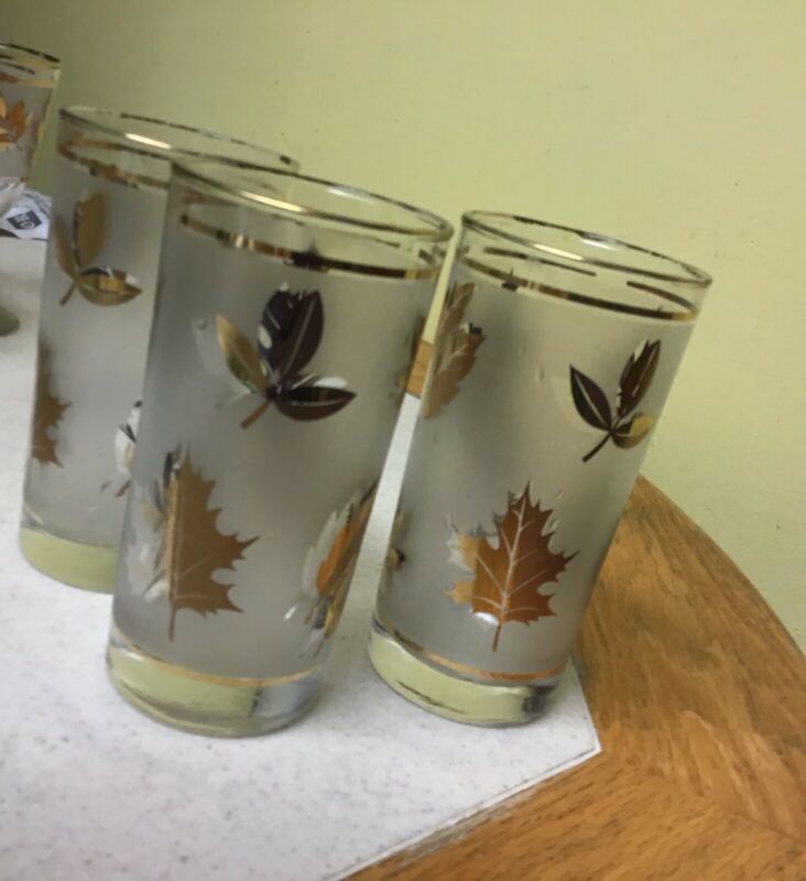 Title (ebay affiliate link): Vintage Mid-Century Libbey Gold Leaf Frosted Tumblers Glasses 3