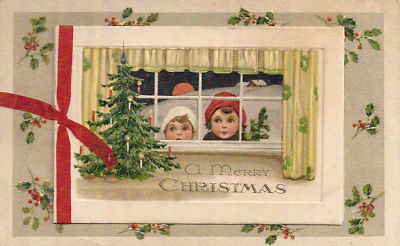 Title (ebay affiliate link): Xmas PC. CHILDREN IN WINDOW, TREE. BOOKLET, RED RIBBON