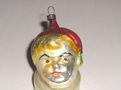 Rare Vtg Czech Glass Christmas Ornament Child w Dimples