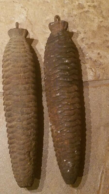 2 Antique Germany Cuckoo Clock Pine Cone Weights approximately 8.5" Long 3.5 Lbs
