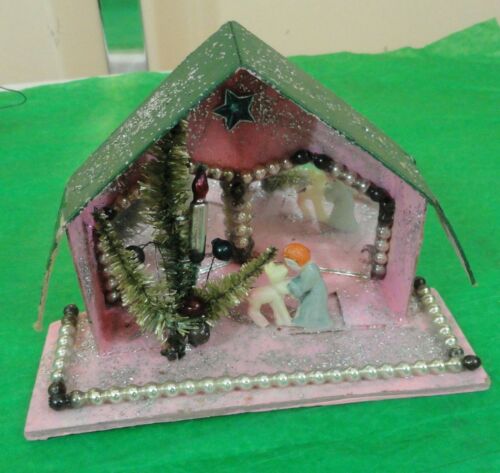 Vintage Christmas Village Cardboard Paper Putz House Made in Japan