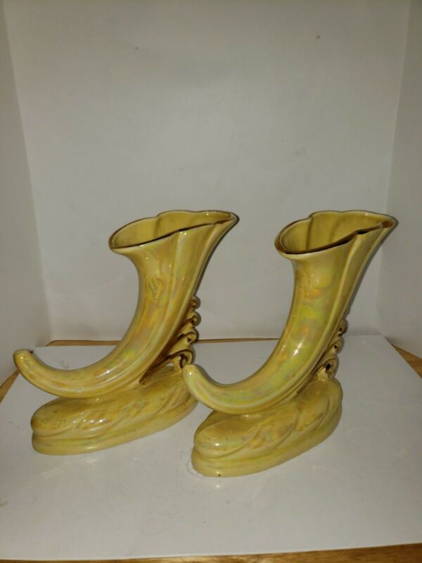 Title (ebay affiliate link): Vintage Weeping yellow Cornucopia Horn Vase Ceramic Warranted 22 K Gold USA 30