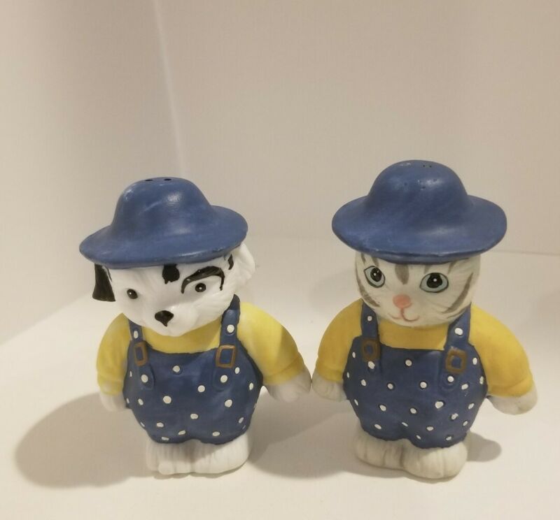 DOG and CAT IN POLK-A-DOT OVERALLS Salt & pepper shakers